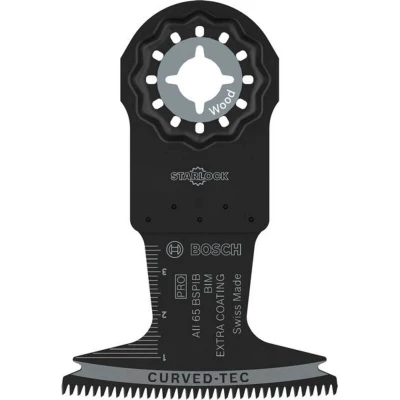 Features: Lasts up to 5x longer than a Bosch AIZ 32 BSPC Multitool Blade Long Life cutting hardwood and abrasive wood materials Plunge cuts are smooth and clean with a Curved-Tec blade. The teeth enter centre-first without chattering: This ensures delamination-free cutting while wear is distributed along the blade. Combines hard teeth and flexible body through Bi-Metal welding: a hardened high-speed steel strip bonded onto a carbon steel body ensures the blade cuts hard and abrasive composite wood effectively. Coated with special formula for enhanced lifespan in tough materials. Starlock mount for optimum power transfer and convenient blade change within 3 seconds The ideal problem-solving blade for professionals, the PRO AII 65 BSPIB combines great plunge cutting ability with a toughness that ensures it can cope with hardwood and wood-composites. The PRO AII 65 BSPIB Plunge Cut Blade is made from Bi-Metal for strength and endurance. It has coated Japan teeth, which make it extra