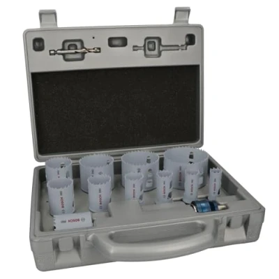 General description The Bosch Pro Multi-Material PC Plus Hole Saw Set is a versatile and comprehensive 14-piece kit designed for cutting through a variety of materials. This set is ideal for both professional and DIY applications, providing the tools necessary for creating precise holes in wood, metal, plastic, and more. Technical specifications Number of pieces: 14 Material: Bi-metal Diameter range: 19 mm to 127 mm Shank type: 1/4 inch hex Compatibility and accessories Compatible with standard power drills Includes a mandrel for easy attachment Installation To install the hole saw, follow these steps: Attach the mandrel to your power drill. Choose the appropriate hole saw size for your project. Secure the hole saw onto the mandrel. Set the drill to the appropriate speed for the material being cut. Usage This hole saw set is suitable for a variety of applications: Creating holes in wood for plumbing and electrical installations. Cutting through metal sheets for fabrication work.