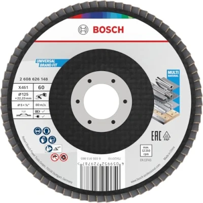 Bosch 15x X451 Flap Disc, G40, G60 (for Steel, Aluminium, Ø 125 mm, Grit 60, Professional Accessory Small Angle Grinder)