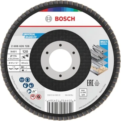Bosch 15x X451 Flap Disc, G80, G120 (for Steel, Aluminium, Ø 115 mm, Grit 120, Professional Accessory Small Angle Grinder)