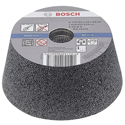 AmazonDesigned for grinding metal Highly efficient for metalworkers: Long Life With 22.23 mm bore for standard locking nut angle grinders For grinding metal and cast iron, eg when cleaning the surface of metal and cast-iron components or resharpening tools Scope of delivery: Bosch PRO Metal Conical Cup Wheel, 90 x 110 x 55 mm, G24, Weight: 1.38229838274 Pounds, Manufacturer: Bosch