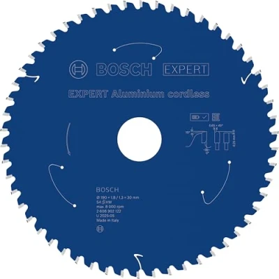 AmazonDesigned for cutting aluminium Exceptional durability is built in with Bosch Carbide Technology Bore works with or without reduction rings to fit different sizes Ideal for cutting aluminium, eg wide aluminium profiles Scope of delivery: EXPERT Aluminium cordless Circular Saw Blade, 190 x 1.8/1.3 x 30 mm, T54, Weight: 0.58863423954 Pounds, Manufacturer: Bosch