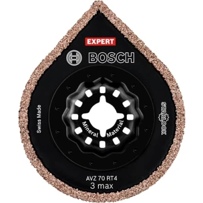 3 Applications with 1 Blade Save time and money with a Multi-Function Accessory Starlock mount for optimum power transfer and convenient blade change within 3 seconds Ideal for removing damaged tiles: the EXPERT AVZ 70 RT4 3 max can cut out mortar joints - including corner pieces - and also sand off the mortar behind the old tile after it has been removed Scope of delivery: EXPERT AVZ 70 RT4 3 max Grouting Plate, Ø70 mm, Weight: 0.13007273458 Pounds, Manufacturer: Bosch