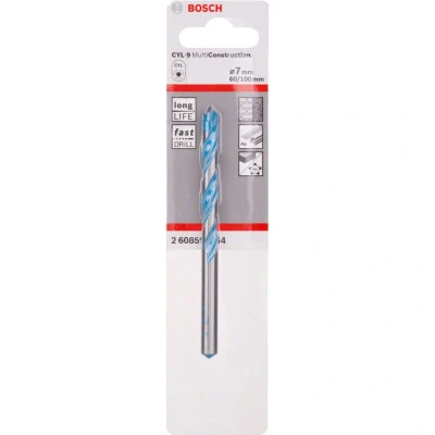 General description The Bosch EXPERT CYL-9 Multi Construction Drill Bit 7 x 60 x 100mm is designed for high precision drilling in a variety of materials including soft concrete, masonry, brick, ceramics, tiles, wood, plastic, sheet metals, and aluminium. Its versatile design makes it an essential tool for any DIY enthusiast or professional tradesperson. Technical specifications Dimensions: 7 x 60 x 100 mm Tip material: High-performance carbide Compatibility and accessories Compatible with three-jaw drill chucks Suitable for use with impact drill/drivers and rotary drills/drivers Usage Ideal for drilling in multiple materials Designed for accurate hole starting with its specially designed centring tip Optimised dust extraction channel for fast and efficient drilling