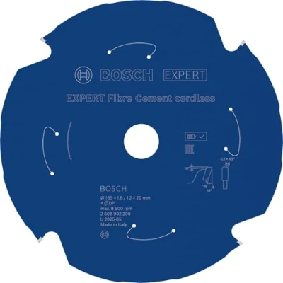 AmazonDesigned for cutting fibre cement Durable teeth with polycrystalline diamond (PCD) thanks to Bosch Diamond Technology Bore works with or without reduction rings to fit different sizes Ideal for cutting fibre cement, eg roofing sheets, cladding boards, and soffit boards Scope of delivery: EXPERT Fibre Cement cordless Circular Saw Blade, 165 x 1.8/1.2 x 20 mm, T4, Weight: 0.41446905256 pounds, Manufacturer: Bosch