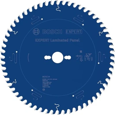 AmazonDesigned for cutting laminated panel Exceptional durability is built in with Bosch Carbide Technology Bore works with or without reduction rings to fit different sizes Ideal for cutting laminated panels, eg skirting boards and panels for kitchen cabinets and kitchen worktops Scope of delivery: EXPERT Laminated Panel Circular Saw Blade, 303 x 3.2/2.2 x 30 mm, T60, Weight: 2.42288025938 Pounds, Manufacturer: Bosch