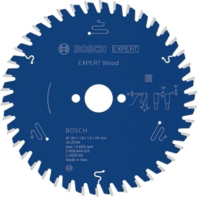 AmazonLasts up to 2x longer than an Eco for Wood Circular Saw Blade Exceptional durability is built in with Bosch Carbide Technology Bore works with or without reduction rings to fit different sizes Ideal for cutting all types of wood and composite wood, eg beams, boards, plates, laths, and any other wooden workpieces you need to cut on the jobsite Scope of delivery: EXPERT Wood Circular Saw Blade, 140 x 1.8/1.3 x 20 mm, T42, Weight: 0.30423792156 pounds, Manufacturer: Bosch