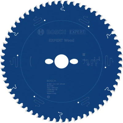 Features: Lasts up to 2x longer than an Eco for Wood Circular Saw Blade Long Life cutting wood Exceptional durability is built into accessories with Bosch Carbide Technology. It combines hard and robust tungsten carbide grains with our own advanced manufacturing techniques. Extra coating for increased performance and durability. The coating reduces friction and protects the circular saw blade from heat and corrosion. Bore works with or without reduction rings to fit different sizes Getting your wooden workpieces, like windowsill boards, ready for installation without the need for rework makes it so much easier. For this, you need a circular saw blade that’s sharp and strong enough to cut through all types of wood and composite wood with precision and ease. We designed the EXPERT Wood to help you get the job done – time and again. The EXPERT Wood is a circular saw blade designed for the jobs you need to get done with a mitre saw. It will help you cut through all types of wood and