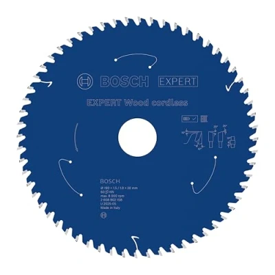AmazonLasts up to 2x longer than an Eco for Wood Circular Saw Blade Exceptional durability is built in with Bosch Carbide Technology Bore works with or without reduction rings to fit different sizes Ideal for cutting all types of wood and composite wood, eg beams, boards, plates, laths, roof battens, and any other wooden workpieces you need to cut on the construction site Scope of delivery: EXPERT Wood cordless Circular Saw Blade, 190 x 1.5/1 x 30 mm, T60, Weight: 0.4519476371 Pounds, Manufacturer: Bosch