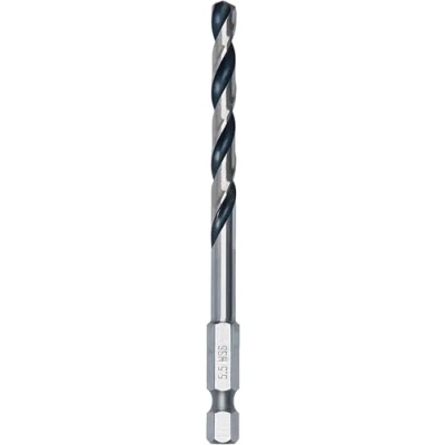 PointTeQ tip design for drilling in metal Popular with construction workers and installers: Long Life 1/4" Impact rated Hex shank for use in impact driver and drill driver For drilling in metal, eg alloyed and unalloyed steel, non-ferrous metals, cast iron, plastics, and wood Scope of delivery: Metal HSS Twist Drill Bit, 5.5 x 57 x 98 mm, HEX 1/4" Shank, Manufacturer: Bosch