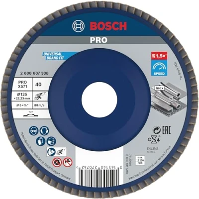 Bosch 1x PRO Metal X571 Flap Disc Straight Version Plastic for Small Angle Grinders (for steel, Stainless Ø 125 mm, Grit 40, Professional Accessory Grinder)