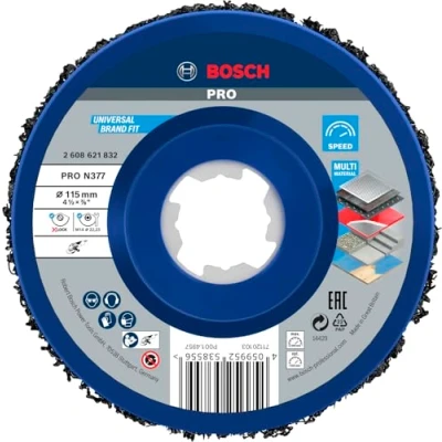 Bosch 1x PRO Multi Material Cleaning Disc N377 for Small Angle Grinders and X Lock (for Steel sheets, Steel, Ø 115 mm, Grit, Professional Accessory Grinder)