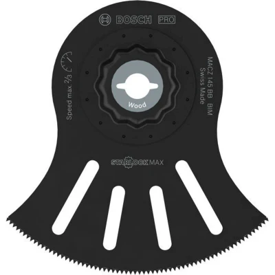 Features: Cuts up to 2x faster than a Bosch ACZ 85 EC Multitool Blade Speed cutting abrasive wood materials Extra large StarlockMax blade for best speed and power. Combines hard teeth and flexible body through Bi-Metal welding: a hardened high-speed steel strip bonded onto a carbon steel body ensures the blade cuts hard and abrasive composite wood effectively. Starlock Max mount for maximum power transfer and convenient blade change within 3 seconds A professional level blade for interior fitting work, the PRO MACZ 145 BB Segment Blade brings accuracy and quality of cutting to your multitool. With Starlock max level speed and efficiency, it's ideal for making burn-free straight cuts on floorboards, panels, and frames. The PRO MACZ 145 BB Segment Blade is made from Bi-Metal for strength and endurance. The large curve of the blade offers fast and accurate cuts in wooden building materials. The blade's side set teeth help you get burn-free cuts.