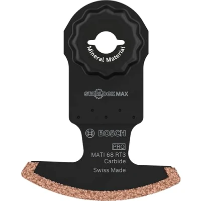 Lasts up to 3x longer than a Bosch ACZ 85 MT4 Multitool Blade Highly efficient for tilers: Long Life Starlock Max mount for maximum power transfer and convenient blade change within 3 seconds For efficiently removing old tile grout, especially in tight corners and niches, eg when re-grouting a bathroom, or to remove and replace a damaged tile; can also be used to cut cable channels in aerated concrete Scope of delivery: Bosch PRO MATI 68 RT3 Multitool Blade, 2.8 x 68 mm, Manufacturer: Bosch