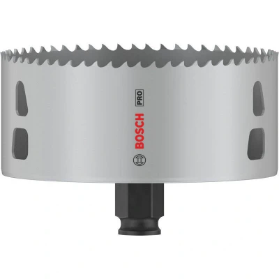 Features: Lasts up to 2x longer than a standard 2608580419 Hole Saw Long Life cutting holes in various materials Bi-Metal with 8% cobalt HSS offers a long life and high efficacy when processing metal and other tough materials. Bosch Power Change makes removing material plugs and changing hole saws easier and faster. For use with the Bosch Power Change Plus keyless arbor: offering accuracy and robustness Electricians and plumbers find hole saws invaluable for installing pipes, electrical boxes, and recessed lighting. Ideally, they want to carry just one kind of hole saw for the challenges and materials that interior installation presents. That's why we have the PRO Multi Material. The PRO Multi Material Hole Saw has enhanced tooth design for fast and smooth cuts and high-cobalt HSS alloy teeth for longevity. It tackles steel cladding and drywall effectively. The Power Change plus makes changing hole saws and pilot drill bits faster and removing material plugs easier.