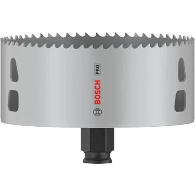 General description The Bosch PRO Multi Material PC Plus Hole Saw, measuring 114mm, features an enhanced tooth design for fast and smooth cuts. Its high-cobalt HSS alloy teeth ensure longevity, making it ideal for tackling steel cladding and drywall effectively. Technical specifications Diameter: 114mm Material: High-cobalt HSS alloy Usage Designed for cutting through various materials including steel cladding and drywall. Compatible with Bosch Power Change plus system for quick changes of hole saws and pilot drill bits.