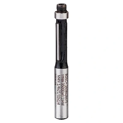 Designed for routing wood Cylindrical shank compatible with routers For flush trimming softwood, hardwood, and composite wood, eg when cutting complex shapes to match templates Scope of delivery: Bosch PRO Router Bit Bottom Bearing Flush Trim, Ø 1/4″ x L 21/32″, Shank 1/4″, Weight: 0.0881849048 Pounds, Manufacturer: Bosch