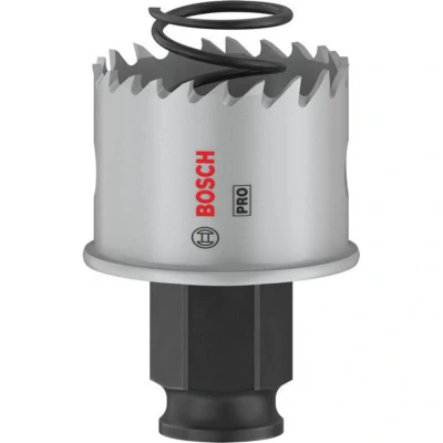 Features: Lasts up to 2x longer than a standard HSS M3 Hole Saw Long Life cutting holes in sheet metal Bi-Metal with 8% cobalt HSS offers a long life and high efficacy when processing metal and other tough materials. Short, robust body with depth stop is designed for efficient working in sheet metal. Ejection spring for automatic plug removal aids quick working. Bosch Power Change makes removing material plugs and changing hole saws easier and faster. For use with the Bosch Power Change Plus keyless arbor: offering accuracy and robustness When you cut sheet metal you want a hole saw that is tough enough to cope with hard steel and still able to make neat and efficient cuts for pipes. The PRO Sheet Metal ticks all these boxes and is a firm favourite with professional metalworkers. We made the PRO Sheet Metal Hole Saw for professionals who need to cut metal. Its teeth are made from HSS with 8% cobalt, which makes them sharp and durable. It has a hardwearing body and a handy ejection