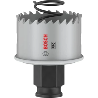 Features: Lasts up to 2x longer than a standard HSS M3 Hole Saw Long Life cutting holes in sheet metal Ejection spring for automatic plug removal aids quick working. Bi-Metal with 8% cobalt HSS offers a long life and high efficacy when processing metal and other tough materials. Short, robust body with depth stop is designed for efficient working in sheet metal. Bosch Power Change makes removing material plugs and changing hole saws easier and faster. For use with the Bosch Power Change Plus keyless arbor: offering accuracy and robustness When you cut sheet metal you want a hole saw that is tough enough to cope with hard steel and still able to make neat and efficient cuts for pipes. The PRO Sheet Metal ticks all these boxes and is a firm favourite with professional metalworkers. We made the PRO Sheet Metal Hole Saw for professionals who need to cut metal. Its teeth are made from HSS with 8% cobalt, which makes them sharp and durable. It has a hardwearing body and a handy ejection