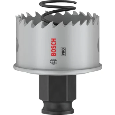 Features: Lasts up to 2x longer than a standard HSS M3 Hole Saw Long Life cutting holes in sheet metal Short, robust body with depth stop is designed for efficient working in sheet metal. Bi-Metal with 8% cobalt HSS offers a long life and high efficacy when processing metal and other tough materials. Bosch Power Change makes removing material plugs and changing hole saws easier and faster. Ejection spring for automatic plug removal aids quick working. For use with the Bosch Power Change Plus keyless arbor: offering accuracy and robustness When you cut sheet metal you want a hole saw that is tough enough to cope with hard steel and still able to make neat and efficient cuts for pipes. The PRO Sheet Metal ticks all these boxes and is a firm favourite with professional metalworkers. We made the PRO Sheet Metal Hole Saw for professionals who need to cut metal. Its teeth are made from HSS with 8% cobalt, which makes them sharp and durable. It has a hardwearing body and a handy ejection