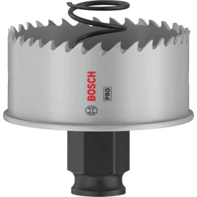 Features: Lasts up to 2x longer than a standard HSS M3 Hole Saw Long Life cutting holes in sheet metal Ejection spring for automatic plug removal aids quick working. Short, robust body with depth stop is designed for efficient working in sheet metal. Bosch Power Change makes removing material plugs and changing hole saws easier and faster. Bi-Metal with 8% cobalt HSS offers a long life and high efficacy when processing metal and other tough materials. For use with the Bosch Power Change Plus keyless arbor: offering accuracy and robustness When you cut sheet metal you want a hole saw that is tough enough to cope with hard steel and still able to make neat and efficient cuts for pipes. The PRO Sheet Metal ticks all these boxes and is a firm favourite with professional metalworkers. We made the PRO Sheet Metal Hole Saw for professionals who need to cut metal. Its teeth are made from HSS with 8% cobalt, which makes them sharp and durable. It has a hardwearing body and a handy ejection