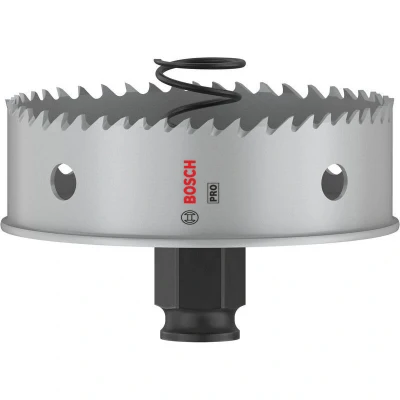 Features: Lasts up to 2x longer than a standard HSS M3 Hole Saw Long Life cutting holes in sheet metal Ejection spring for automatic plug removal aids quick working. Bosch Power Change makes removing material plugs and changing hole saws easier and faster. Short, robust body with depth stop is designed for efficient working in sheet metal. Bi-Metal with 8% cobalt HSS offers a long life and high efficacy when processing metal and other tough materials. For use with the Bosch Power Change Plus keyless arbor: offering accuracy and robustness When you cut sheet metal you want a hole saw that is tough enough to cope with hard steel and still able to make neat and efficient cuts for pipes. The PRO Sheet Metal ticks all these boxes and is a firm favourite with professional metalworkers. We made the PRO Sheet Metal Hole Saw for professionals who need to cut metal. Its teeth are made from HSS with 8% cobalt, which makes them sharp and durable. It has a hardwearing body and a handy ejection