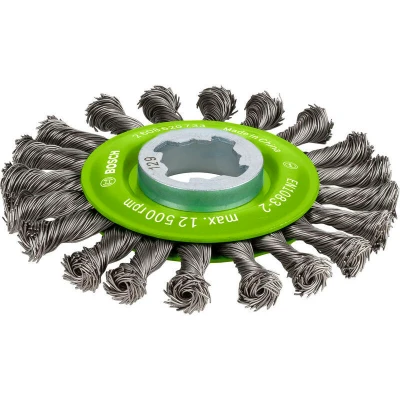 Features: Designed for cleaning stainless steel Long Life cleaning stainless steel Premium knotted wire for heavy-duty cleaning. Strong knotted wire ensures long-lasting performance. Click it on with X-Lock Are you a metalworker who needs a durable wire wheel to get a coarse finish on small and hard-to-reach areas? The PRO Stainless Steel heavy Wire Wheel is fitted with high-quality knotted wire to ensure you can tackle heavy-duty applications – for a long time. The PRO Stainless Steel heavy Wire Wheel is a durable accessory you like to have at hand in your metal shop. We fitted it with premium knotted wire to make sure it can tackle heavy-duty cleaning tasks efficiently. The wire wheel is a great choice when you need to deburr, descale, and clean welds on surfaces, edges, and in grooves of stainless steel and non-ferrous metal workpieces.