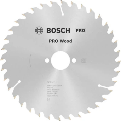 Features: Lasts up to 1.3x times longer than a Bosch Eco for Wood Circular Saw Blade Long Life cutting wood Expansion slots reduce noise and heat build-up to ensure a longer lifetime Ground and sharpened fine carbide teeth for strength, durability and precision. Made using high-quality carbide grains, the teeth are individually shaped for top performance. Bore works with or without reduction rings to fit different sizes The PRO Wood Circular Saw Blade is designed to solve your challenges cutting all types of solid wood and wood-based panel materials. We made it strong and well-balanced to ensure you get clean and accurate cuts – for a long time. The PRO Wood Circular Saw Blade is a great choice for woodworkers working on all types of solid wood and wood-based panel materials. Our wood circular saw blade features precision-ground carbide teeth for strength and durability. Its hardened steel base keeps it stable and ensures it cuts with precision. The expansion slots reduce heat