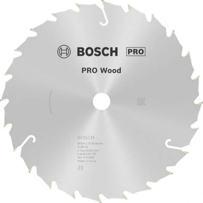 Features: Lasts up to 1.3x times longer than a Bosch Eco for Wood Circular Saw Blade Long Life cutting wood Ground and sharpened fine carbide teeth for strength, durability and precision. Made using high-quality carbide grains, the teeth are individually shaped for top performance. Expansion slots reduce noise and heat build-up to ensure a longer lifetime Bore works with or without reduction rings to fit different sizes The PRO Wood Circular Saw Blade is designed to solve your challenges cutting all types of solid wood and wood-based panel materials. We made it strong and well-balanced to ensure you get clean and accurate cuts – for a long time. The PRO Wood Circular Saw Blade is a great choice for woodworkers working on all types of solid wood and wood-based panel materials. Our wood circular saw blade features precision-ground carbide teeth for strength and durability. Its hardened steel base keeps it stable and ensures it cuts with precision. The expansion slots reduce heat