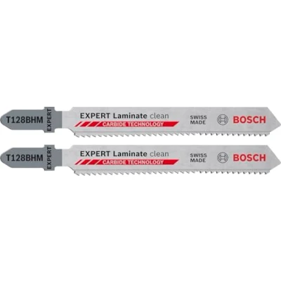 Lasts up to 50 times longer than a Bosch T101B sheet in tough materials Superior durability thanks to Bosch Carbide Technology Fits all T shank jigsaws Ideal for trimming laminate planks when shop fitting or other commercial installations; cutting fiber reinforced vinyl flooring boards; cutting HPL (high pressure laminate board) such as cladding for homes Box contents: Expert Laminate Clean T128BHM jigsaw blade, 2 pieces, Weight: 0.04188782978 pounds, Manufacturer: Bosch