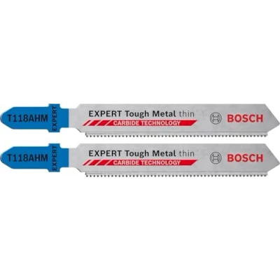 Lasts up to 50 times longer than a Bosch T118G jigsaw blade in tough materials Superior service life thanks to Bosch Carbide Technology Fits all T shank jigsaws Ideal for straight cuts in stainless steel sheet such as adjustment cuts on industrial fittings, in mechanical engineering and during assembly work on lifts and escalators Box contents: Expert stainless steel T118AHM jigsaw blade, 2 pieces, Weight: 0.03968320716 pounds, Manufacturer: Bosch