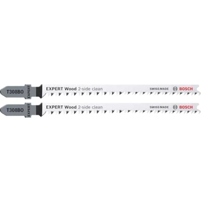 Bosch 2 x Expert wood side clean T308BO jigsaw blade (for solid furniture board, plywood, length 117 mm, professional accessories jigsaw)