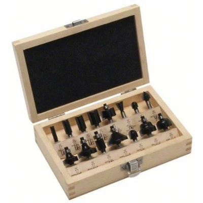 Features: Ideally equipped to handle virtually any routing task: Compact Bosch carbide router bit set for producing the most common profiles and connections with hand-guided routers. Precise fit and long service life thanks to high-grade carbide tips, optimised cutting geometry and a precision-ground finish. For profiling: 2 rounding over bits, 1 chamfer/trimming cutter, 2 core box bits, 1 edge forming bit, 1 V-slot cutter, 1 cove bit For precise connections: 1 trimming cutter, 1 rebate router, 4 slot cutters, 1 dovetail bit. For routing with a 1/4"" tool holding fixture from all common power tool brands. In an attractive and logically laid out wooden storage case. Safety note: Please always wear protective goggles, a dust mask and hearing protection when using these sheets. High-grade carbide tips, optimised cutting geometry and a precision-ground finish for lasting performance. Great router bit assortment for any routing project. Compatible with all common 1/4-inch handheld routers.