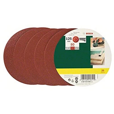 Suitable for hard and soft wood, wood-based materials, chipboard and metal. Diameter: 125 mm. 25pcs 80 Grit For random orbital sanders of most power tool brands. Dimensions: 130 x 130 x 23. Made in Switzerland International products have separate terms, are sold from abroad and may differ from local products, including fit, age ratings, and language of product, labeling or instructions., Weight: 0.2866009406 Pounds, Manufacturer: Bosch