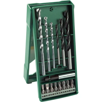 Features: Ideally equipped to handle the most important jobs: Clearly structured DIY enthusiast set for drilling 5 - 8 mm holes in wood and masonry. Comes with 8 screwdriver bits and universal holder. 3 high-grade, durable drill bits for versatile applications in wood and in masonry. 8 screwdriver bits for the most important screw head types and sizes for quick and easy screwdriving and mounting. Magnetic universal holder for fast bit changes and a reliable screw hold in the bit. Practical Bosch Mini-X-Line box keeps everything neat and tidy. Suitable for all power tool brands. Safety note: Please wear appropriate protective clothing based on the application: Wood drilling: Protective goggles and dust mask Masonry drilling: Protective goggles, dust mask, hearing protection and work gloves What's in the box: 3 masonry drill bits, Ø 5/6/8 mm 3 wood drill bits, Ø 4/6/8 mm 8 screwdriver bits, L = 25 mm PH 1/2 PZ 1/2 S 4/6 T 20/25 1 universal holder, magnetic
