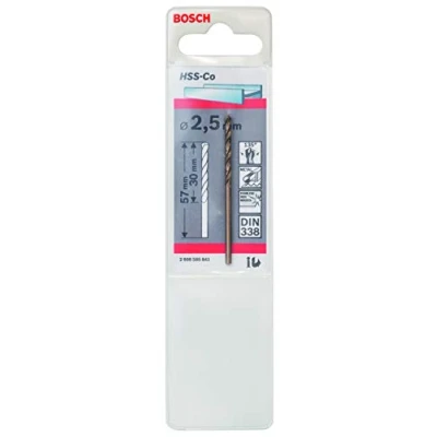 Bosch 2608585841 Professional HSS Co Metal drill Bit (stainless steel, 2.5 x 30 57 mm, accessory driver) , Gold