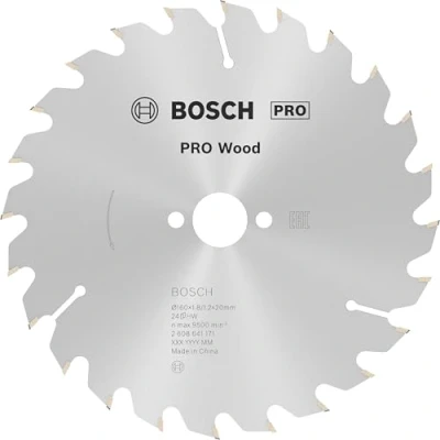 Features: Lasts up to 1.3x times longer than a Bosch Eco for Wood Circular Saw Blade Long Life cutting wood Ground and sharpened fine carbide teeth for strength, durability and precision. Made using high-quality carbide grains, the teeth are individually shaped for top performance. Expansion slots reduce noise and heat build-up to ensure a longer lifetime Bore works with or without reduction rings to fit different sizes The PRO Wood Circular Saw Blade is designed to solve your challenges cutting all types of solid wood and wood-based panel materials. We made it strong and well-balanced to ensure you get clean and accurate cuts – for a long time. The PRO Wood Circular Saw Blade is a great choice for woodworkers working on all types of solid wood and wood-based panel materials. Our wood circular saw blade features precision-ground carbide teeth for strength and durability. Its hardened steel base keeps it stable and ensures it cuts with precision. The expansion slots reduce heat