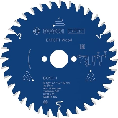 Lasts up to 2x longer than an Eco for Wood Circular Saw Blade Exceptional durability is built in with Bosch Carbide Technology Bore works with or without reduction rings to fit different sizes Ideal for cutting all types of wood and composite wood, eg beams, boards, plates, laths, and any other wooden workpieces you need to cut on the jobsite Scope of delivery: EXPERT Wood Circular Saw Blade, 130 x 2.4/1.6 x 20 mm, T36, Weight: 0.31746565728 Pounds, Manufacturer: Bosch