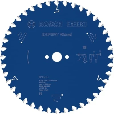 AmazonLasts up to 2x longer than an Eco for Wood Circular Saw Blade Exceptional durability is built in with Bosch Carbide Technology Bore works with or without reduction rings to fit different sizes Ideal for cutting all types of wood and composite wood, eg beams, boards, plates, laths, and any other wooden workpieces you need to cut on the jobsite Scope of delivery: EXPERT Wood Circular Saw Blade, 184 x 2.6/1.6 x 16 mm, T40, Weight: 0.661386786 Pounds, Manufacturer: Bosch