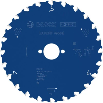 AmazonLasts up to 2x longer than an Eco for Wood Circular Saw Blade Exceptional durability is built in with Bosch Carbide Technology Bore works with or without reduction rings to fit different sizes Ideal for cutting all types of wood and composite wood, eg beams, boards, plates, laths, and any other wooden workpieces you need to cut on the jobsite Scope of delivery: EXPERT Wood Circular Saw Blade, 190 x 2.6/1.6 x 30 mm, T24 Special feature: Microteq teeth for long life Range of application: for plunge and circular saws Number of teeth: 24, Weight: 0.67681914434 pounds, Manufacturer: Bosch