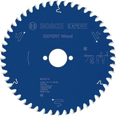 AmazonLasts up to 2x longer than an Eco for Wood Circular Saw Blade Exceptional durability is built in with Bosch Carbide Technology Bore works with or without reduction rings to fit different sizes Ideal for cutting all types of wood and c, eg stair treads, wainscot panels, boards, wooden plates, and any other wooden workpieces you need to cut on the jobsite Scope of delivery: EXPERT Wood Circular Saw Blade, 190 x 2/1.3 x 30 mm, T48