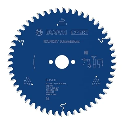 AmazonDesigned for cutting aluminium Exceptional durability is built in with Bosch Carbide Technology Bore works with or without reduction rings to fit different sizes Ideal for cutting aluminium, eg aluminium sheets Scope of delivery: EXPERT Aluminium Circular Saw Blade, 160 x 2.2/1.6 x 20 mm, T52, Weight: 0.49824471212 Pounds, Manufacturer: Bosch