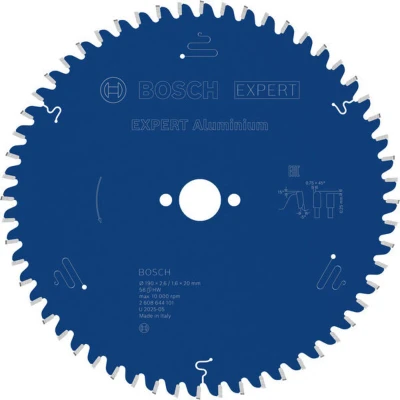 Features: Designed for cutting aluminium Long Life cutting aluminium Exceptional durability is built into accessories with Bosch Carbide Technology. It combines hard and robust tungsten carbide grains with our own advanced manufacturing techniques. Extra coating for increased performance and durability. The coating reduces friction and protects the circular saw blade from heat and corrosion. Bore works with or without reduction rings to fit different sizes When you need to cut aluminium sheets on the construction site, you want a circular saw blade that's sharp, precise, and durable. We designed the EXPERT Aluminium to help you get the job done with ease. The EXPERT Aluminium is a circular saw blade for the jobs you need to get done with your handheld circular saw. It will help you cut through wide aluminium profiles – effectively, time and again. The EXPERT Aluminium features sharpened fine carbide teeth made using Bosch Carbide Technology. This means the circular saw blade lasts