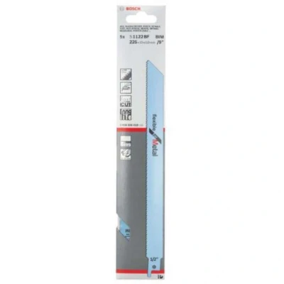 Bosch 2608656019 S1122BF Saber Saw Blade Flexible for Metal, Pack of 5