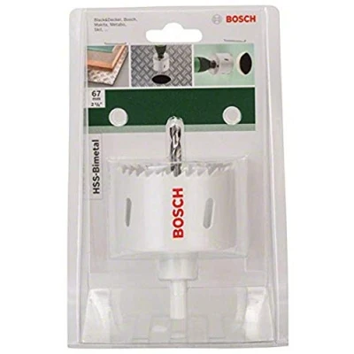 67mm head size Fits all brands Use for alloyed and non-allozed aluminium, non-ferrous metals, caste stell and cast iron, acrylic glass, wood, plastic Best performance in cutting speed and liftime One-part system for precise true running smooth and with low vibration. Includes pilot drill bit, Weight: 0.6393405598 Pounds, Manufacturer: Bosch