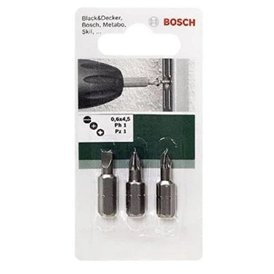 Contains LS 0.6 x 4.5, Ph 1, Pz,1 head size bits For all brands (screw drivers and drill/drivers) Bosch bits always provide a practical soltution Drive as per DIN 3126-C6.3 for use in universal holders Find the right bit for every application and for every conventional screw, Weight: 0.0330693393 Pounds, Manufacturer: Bosch
