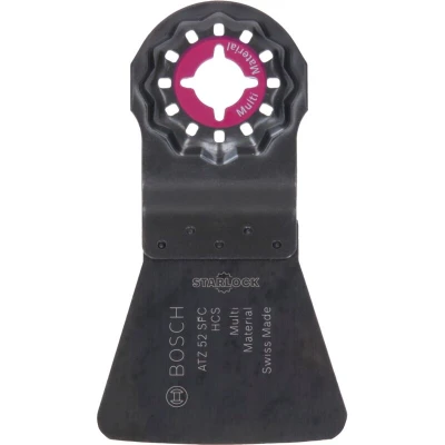 Features: ATZ 52 SFC flexible oscillating multitool scraper blade for various materials. Made from high-carbon steel (HCS). For removing soft carpet adhesive residue and paint. Starlock mounting for high power transfer from your oscillating multitool. Fits standard oscillating multitool from most brands.