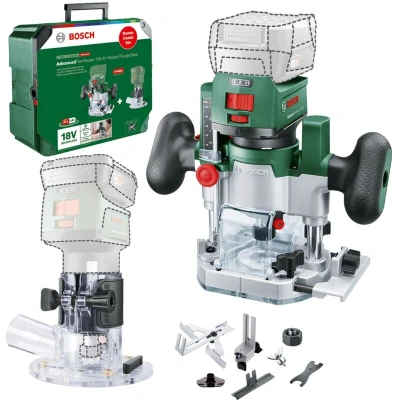 Features: 2-in-1 cordless trim and plunge router for effortless DIY milling Brushless motor ensures highest power and significantly longer lifetime Cordless router comes with two bases for comprehensive plunge and edge milling Effortless milling of edges, slots, circles, pockets, and decorative motives Clever 7-step turret stop allows easy and convenient milling depth adjustment Compatible with parallel guide and Bosch guide rail for optimal straight slot milling Syneon Technology for optimum power and maximum runtime POWER FOR ALL ALLIANCE: 1 battery, 10+ brands, 150+ products The Router Combi Set is the powerful all-rounder that includes a trim router and plunge router base. Thanks to the compatible bases, the AdvancedTrimRouter 18V-8 can be converted from a trim router into a plunge router in no time and carry out all DIY milling applications. The Router Combi Set consists of the AdvancedTrimRouter 18V-8 and the Router Plunge Base, so it’s easy to switch from edge to plunge milling