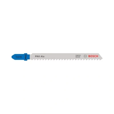 Designed for cutting aluminium Highly effective for metalworkers: Long Life Fits all T-shank jigsaws For long-lasting cutting of aluminium and other non-ferrous metals, eg aluminium sheets between 3 and 15 mm thick, pipes, and profiles of up to 25 mm diameter Scope of delivery: Bosch PRO Alu T127D Jigsaw Blade, 100 mm, 2 pcs, Weight: 0.03527396192 Pounds, Manufacturer: Bosch