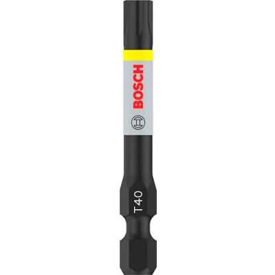 Up to 50x more robust than a Bosch 2607001528 Extra Hard Bit Highly efficient for installers, electricians, metalworkers, and woodworkers: Robust 1/4" Impact rated Hex shank for use in impact driver and drill driver For driving T screws efficiently, eg when installing all types of panels, equipment, and fixtures Scope of delivery: Bosch PRO Torx Impact Bit, T40, 55 mm, 2 pcs, Weight: 0.05732018812 Pounds, Manufacturer: Bosch